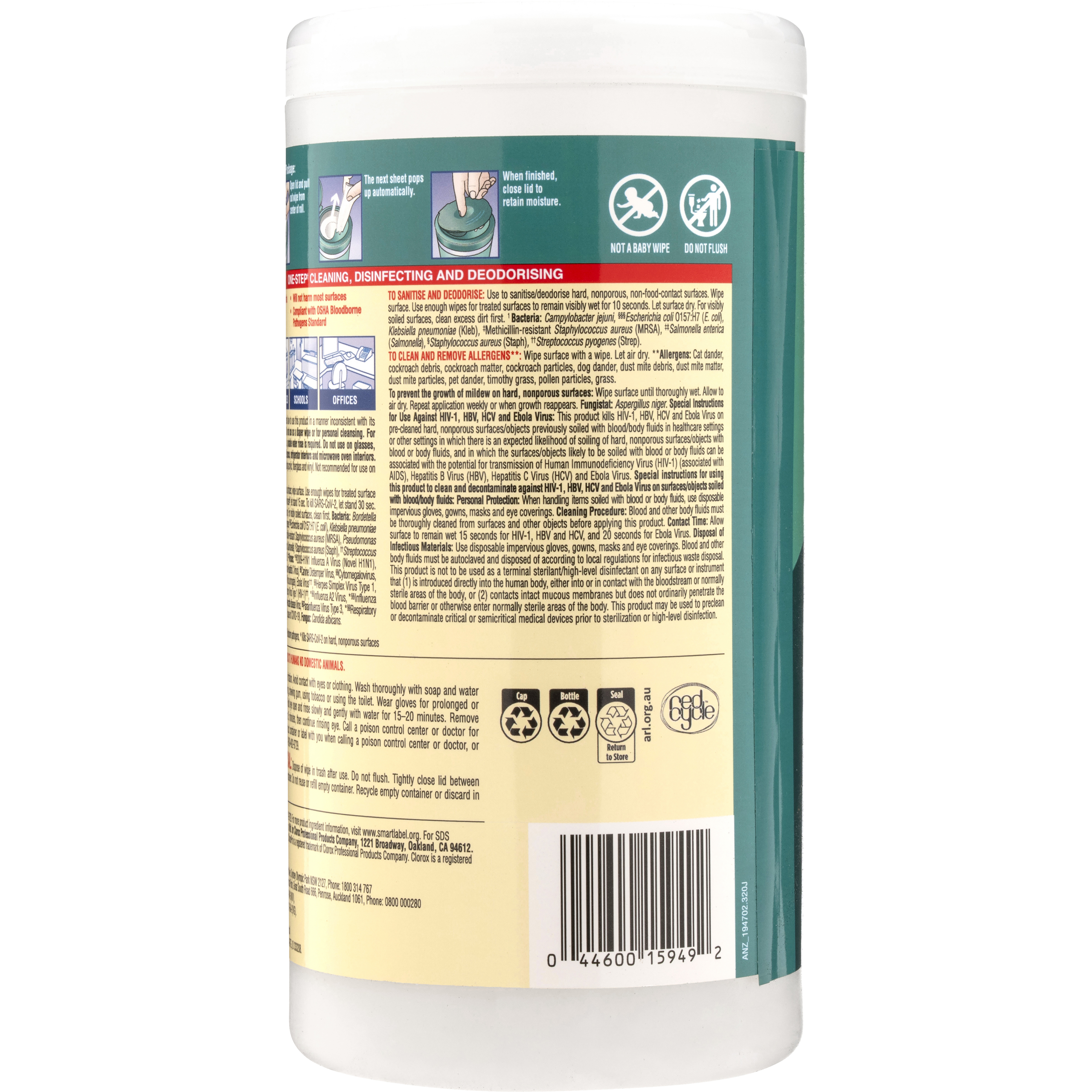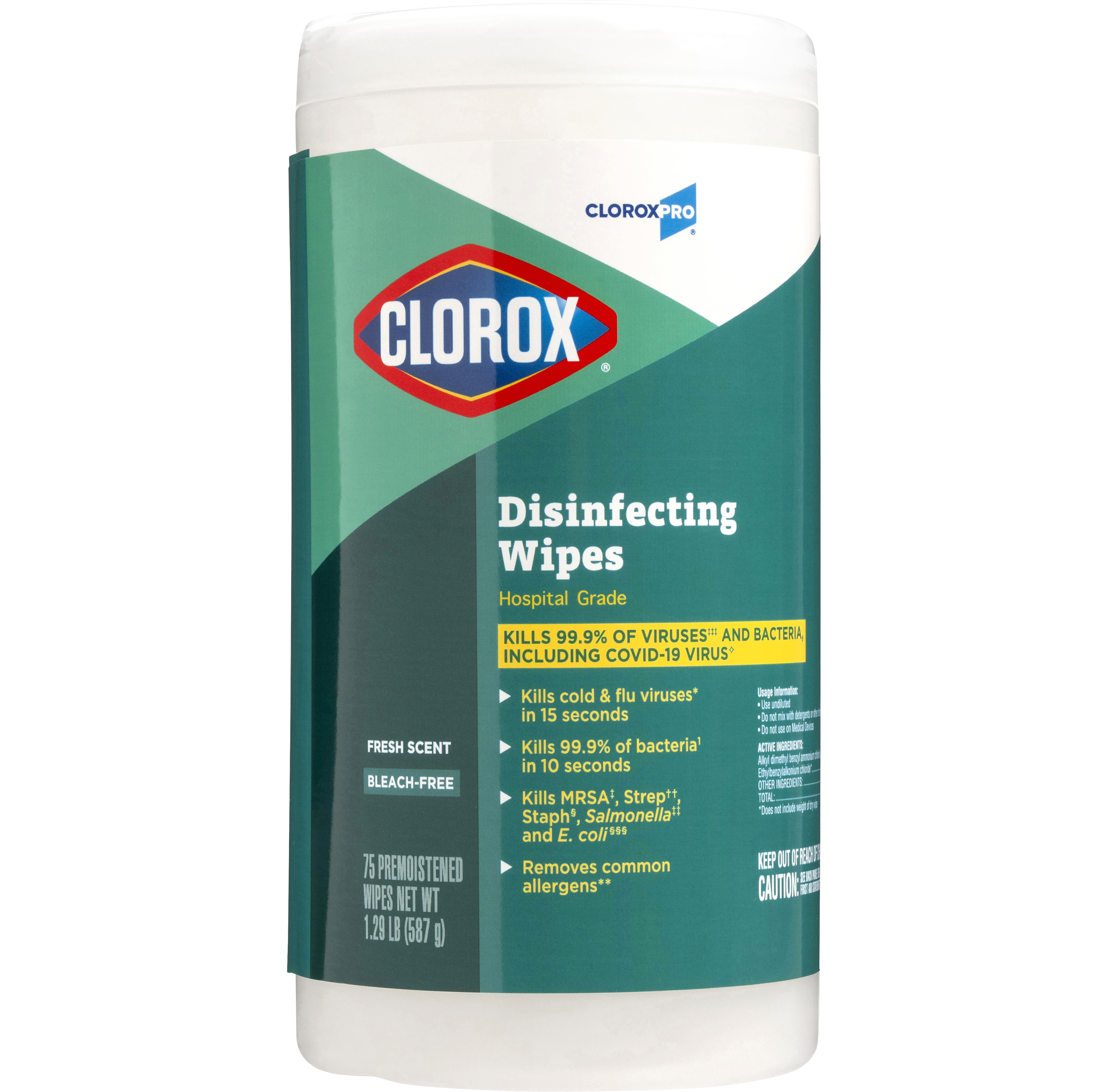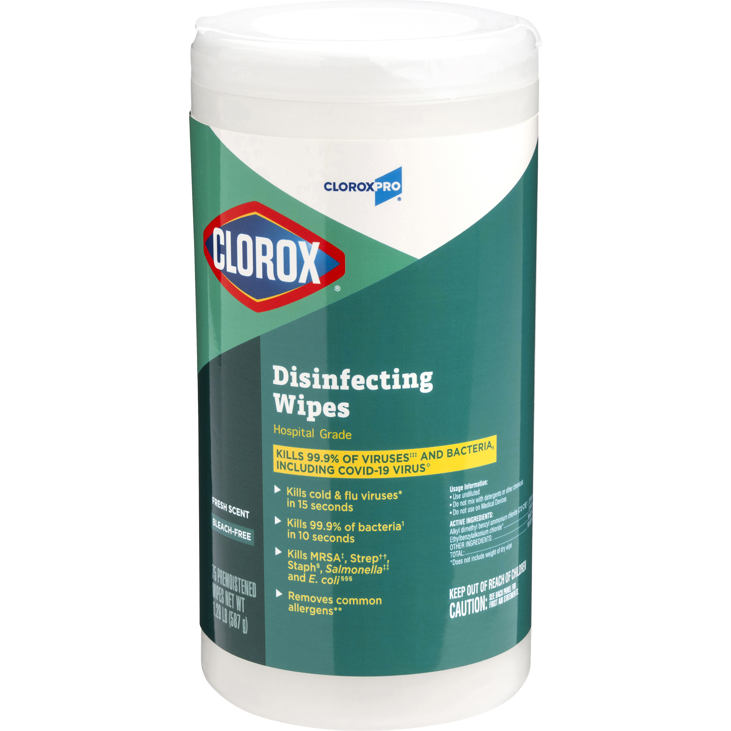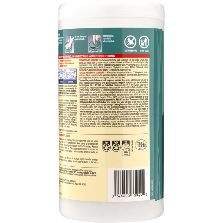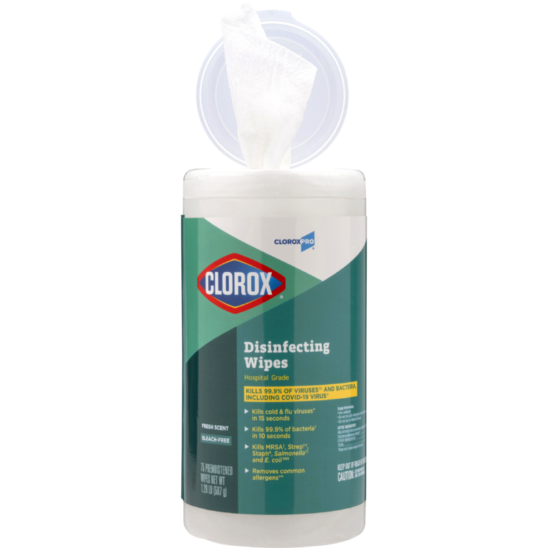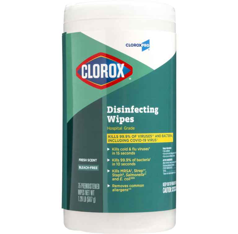 Attack multiple surfaces and messes with one efficient wipe. These bleach-free disinfecting wipes kill 99.9% of viruses* and bacteria including Staph†, E. coli‡, Salmonella§, Strep††, Kleb‡‡ and the viruses that cause cold and flu. Use in high-traffic areas like bathrooms, break rooms and workout facilities, and hot spots like doorknobs, phones and keyboards.