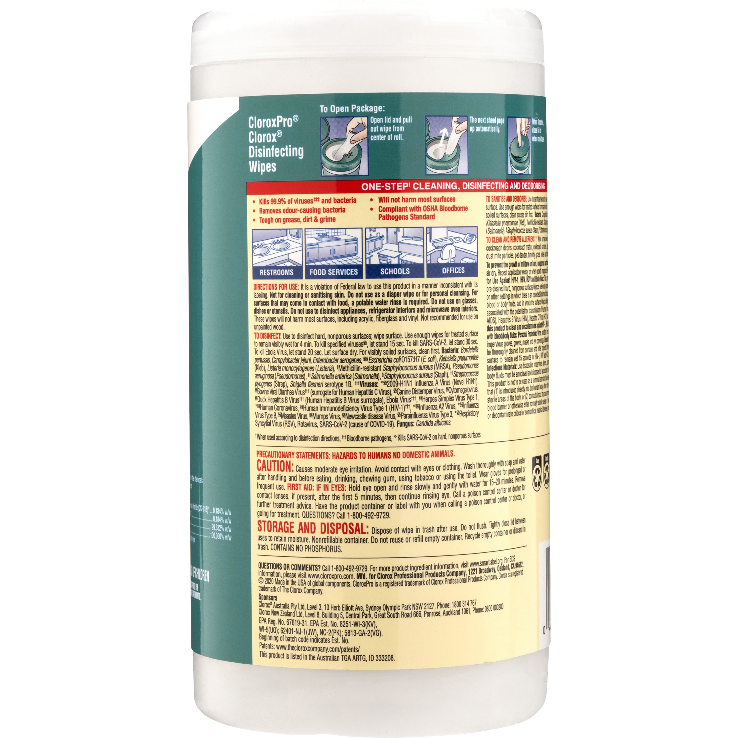 Clean and disinfect 99.9% of germs in one easy step. These wipes kill viruses and bacteria including cold and flu germs, MRSA, staph, E. coli, strep, salmonella and the organism that can cause whooping cough.